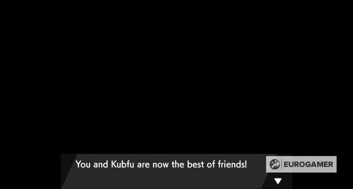 Interagieren Sie mit dem Dojo -Assistenten an einem dieser Orte und lassen Sie Sie in der Aussicht trinken. Danach erhalten Sie eine Benachrichtigung, dass Sie und Kubfu die besten Kumpels sind, und es ist Zeit, zurück zum Dojo zu gehen!