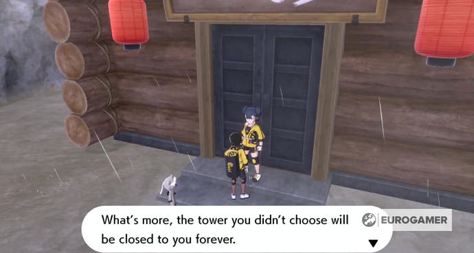 Sobald Sie dort sind, müssen Sie fünf Trainer nacheinander besiegen, ein bisschen wie eine Elite -Vierer -Herausforderung der alten Schule. Es gibt einige Regeln: Sie können nicht gehen, bis Sie entweder alle geschlagen oder selbst besiegt wurden, und vor allem können Sie Kubfu nur hineinbringen – kein anderes Pokémon! Oh, und du kannst nur herausfordern eins der beiden Türme, was bedeutet, dass Sie nur eine der beiden Formen von Urshifu bekommen. Um den anderen zu erhalten, müssen Sie die Isle of Armor DLC mit der anderen Version des Spiels erneut abschließen!