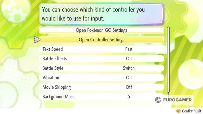 1. Verbinden Sie Ihren Poké Ball Plus als Ihre Kontrolle ler, wenn Sie es noch nicht getan haben. Gehen Sie dazu zum Pausemenü des Spiels und wählen Sie Optionen, indem Sie Y drücken und dann öffnen Steuereinstellungen steuern ‚. Drücken Sie eine Taste auf der Pokémon Go Plus – Möglicherweise müssen Sie den Knopf gedrückt halten – und bald genug wird es rot wie die Strom beleuchtet Kontrolle ler verwendet.