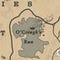 Jack Hall Gang Treasure Map 3 Punkte auf eine Insel mit einem Trio von Bergen dahinter. Dies ist O’Creaghs Lauf, ein See im Nordosten der Karte.
