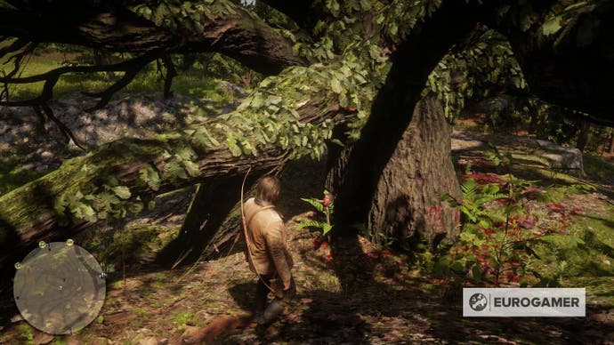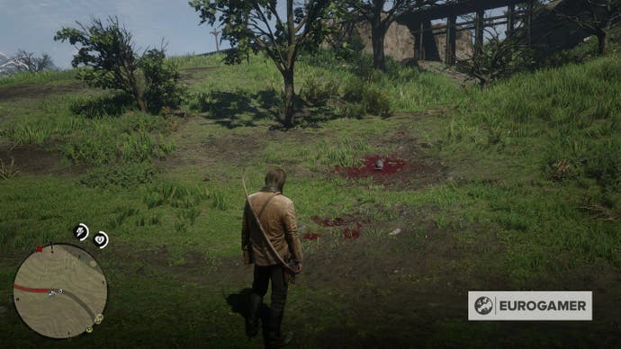 Schauen Sie aus dem Norden nach rechts, um die Blutspur zu finden und Sie zu einem Baum zu führen.