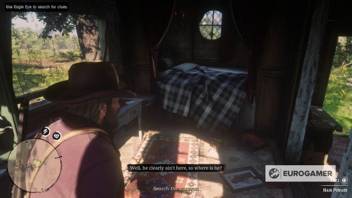 Gehen Sie mit Charles am ausgewiesenen Punkt und suchen Sie den Karawanen. Schauen Sie sich den Schreibtisch links an, um eine Nachricht und einen Hinweis zusagt, nach draußen zu gehen und den Tierspuren zu folgen.