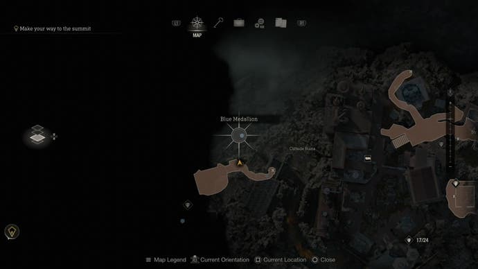 - Standorte für blaue Medaillon -Standorte in Cliffside -Ruinen