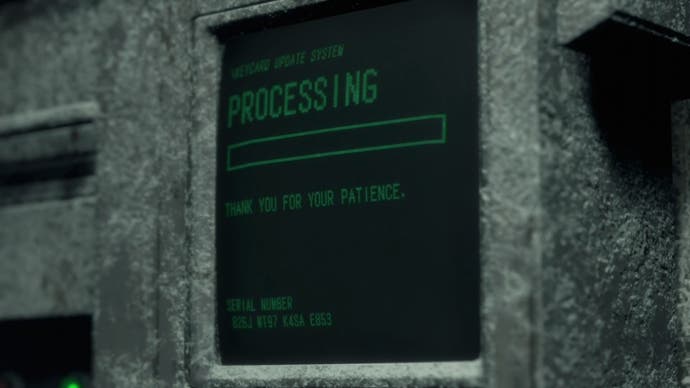 Sobald Sie sich mit den Feinden befasst und den Bereich für Ressourcen geplündert haben, gehen Sie auf die Rückseite des Labors – ignorieren Sie das Überschreibterminal vorerst – und nehmen.
