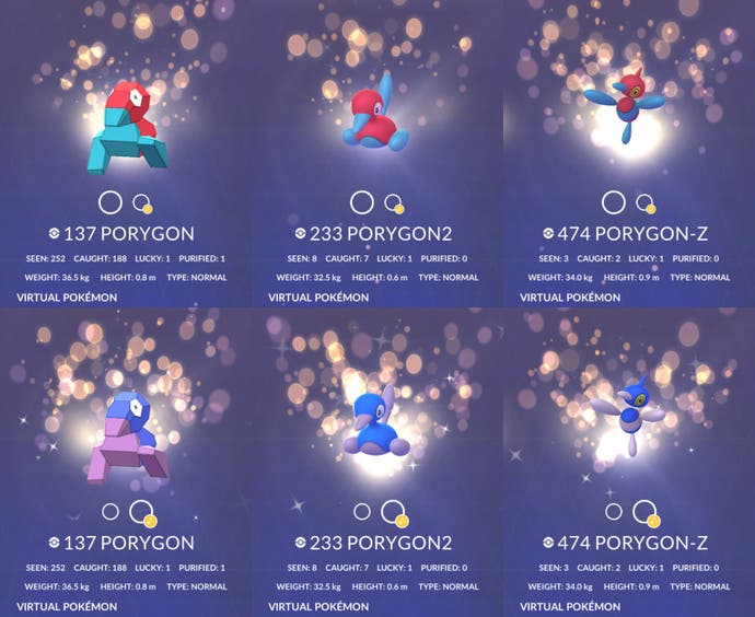 - Wie sehen glänzend Porygon, Porygon2 und Porygon-Z aus?