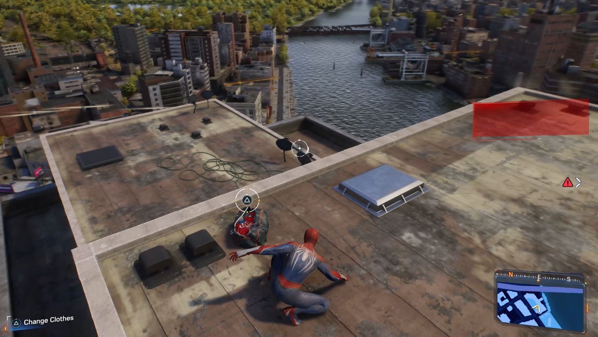 Die Möglichkeit, Anzüge zu wechseln, schaltet kurz nach dem Einbau von Sandman und vervollständigt den Prolog des Spiels. Du’Ich werde als Peter spielen und eines Ihrer Ziele ist es, einen Ersatzanzug abzurufen. Dies fungiert als Tutorial zum Umschalten von Anzügen.