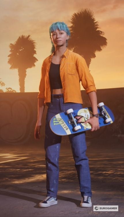 Mit dem In-Game-Shop können Sie diesen Charakter weiter anpassen, indem Sie eine Auswahl neuer Kleidungsstücke, Skateboards und anderer Accessoires wie Tätowierungen und Räder anbieten.
