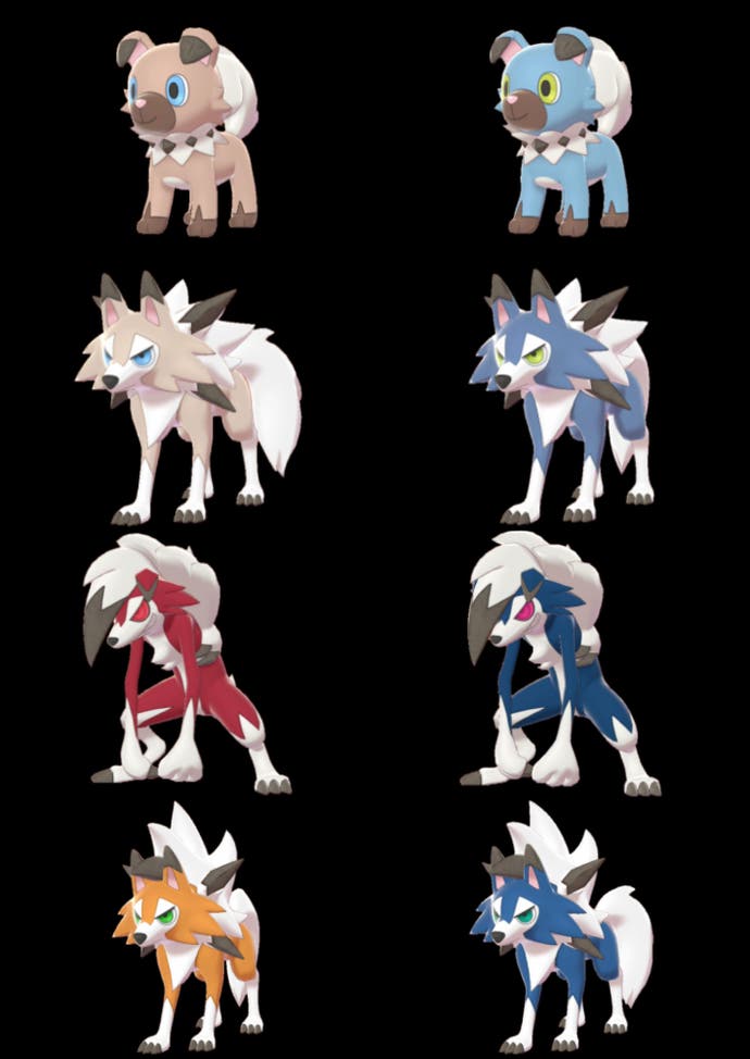 Beim Debüt können Rockruff und Lycanrocs Formen glänzend sein. So sehen sie alle im Vergleich zu ihren regulären Kollegen auf einen Blick aus (dank Topassistance2 auf Reddit für das Bild):