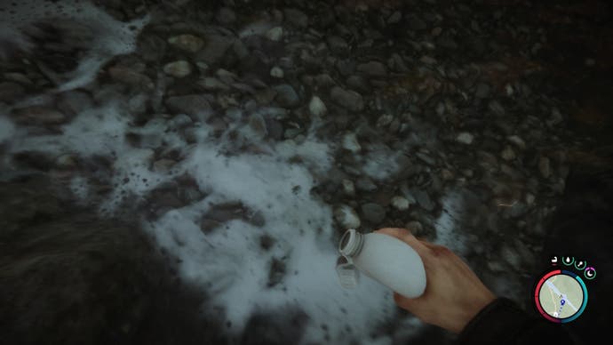 Der beste, konsequenteste Weg, Wasser zu bekommen, besteht darin, aus einer Wasserquelle wie einem See, Fluss oder Teich aus zu trinken. Um das Wasser hier zu trinken, müssen Sie sich es nähern oder sich höfen, bis die Eingabeaufforderung angezeigt wird. Ein oder zwei Getränke sollten Ihre Durststange sehr schnell wieder nach oben füllen.