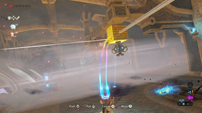 Aktivieren des vierten Terminals öffnen das Tor zurück zu dem Ort, an dem Sie das erste Terminal gelöst haben, aber stattdessen kehren Sie zum Seilwagen zurück und fahren Sie es zurück in Richtung der Mitte.