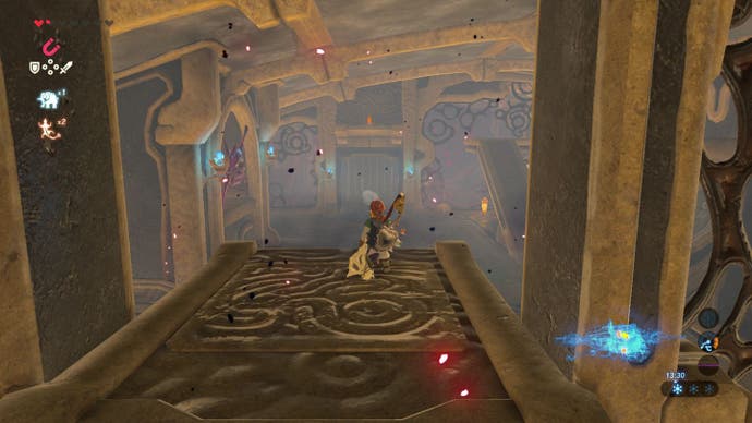 Zwei Treffer pro Kanone zerstören sie und Sie können leicht nacheinander abfeuern, um den Prozess schnell zu machen. Brennen Sie wie angewiesen, feuern Sie nicht oder nähern Sie sich dem roten Kraftfeld, da dies zerstört wird, wenn alle vier Kanonen unten sind, und den Weg zum Vah Medoh -Dungeon ebnet.