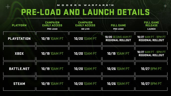 Wie bei der Kampagne die Modern Warfare 2 Multiplayer -Veröffentlichungszeit Unterscheidet sich je nachdem, ob Sie sich auf dem PC oder auf der Konsole befinden – sowie in der Region, in der Sie sich befinden.