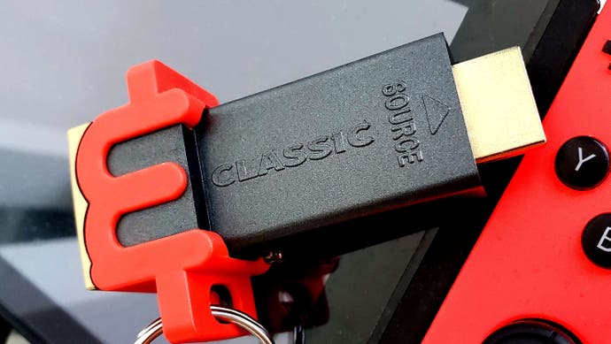 Sie erhalten drei Stücke in der Schachtel;Der mlassische Dongle selbst, ein USB -Kabel, um es mit Strom zu versorgen, und ein HDMI -Extender. Sie müssen einen Netzadapter für den USB nachspüren, aber jeder PC, eine Fernseher oder jede Konsole bietet ausreichend Strom, damit es ausgeführt werden kann. Der HDMI -Extender ist ein Weg, um den Schalter während der Anlegung zu unterstützen, da die große M -Form auf dem McLassic -Gehäuse es unmöglich macht, sonst in den Rücken zu stecken. Das Anschließen in den Schalter, die Xbox One oder sogar ein OSSC ist ein Doddle mit all diesen Teilen. Die McLassic -Einheit selbst hat auch ein stilvolles Finish, mit einem roten, hervorstehenden Griff und einem gold gestrichenen Finish am hinteren Ende – plus natürlich eine neue Funktion auf der Seite: ein Verarbeitungsmodus, den wir nicht auf dem McAbles hatten.