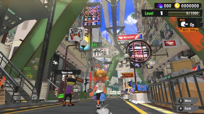 Auch alles hat eine Fülle und eine Großzügigkeit, die dieses Gefühl der Vertrautheit ausgleichen. Vielleicht das beste Beispiel dafür ist eines, für das ich die geringste Zeit verbracht habe, mit einem vollwertigen 1v1-Karten-Kampfspiel, falls Sie eine der Seitengassen von New Hub World Splatsville entlang wagen sollten. Hier können Sie Ihre eigenen Decks in einer witzigen Destillation von Splatoons Rasenkriegsmodus mitbringen und bauen. Es hat einige ordentliche Tiefe enthüllt, in denen ich es gespielt habe, und ich möchte mehr spielen.