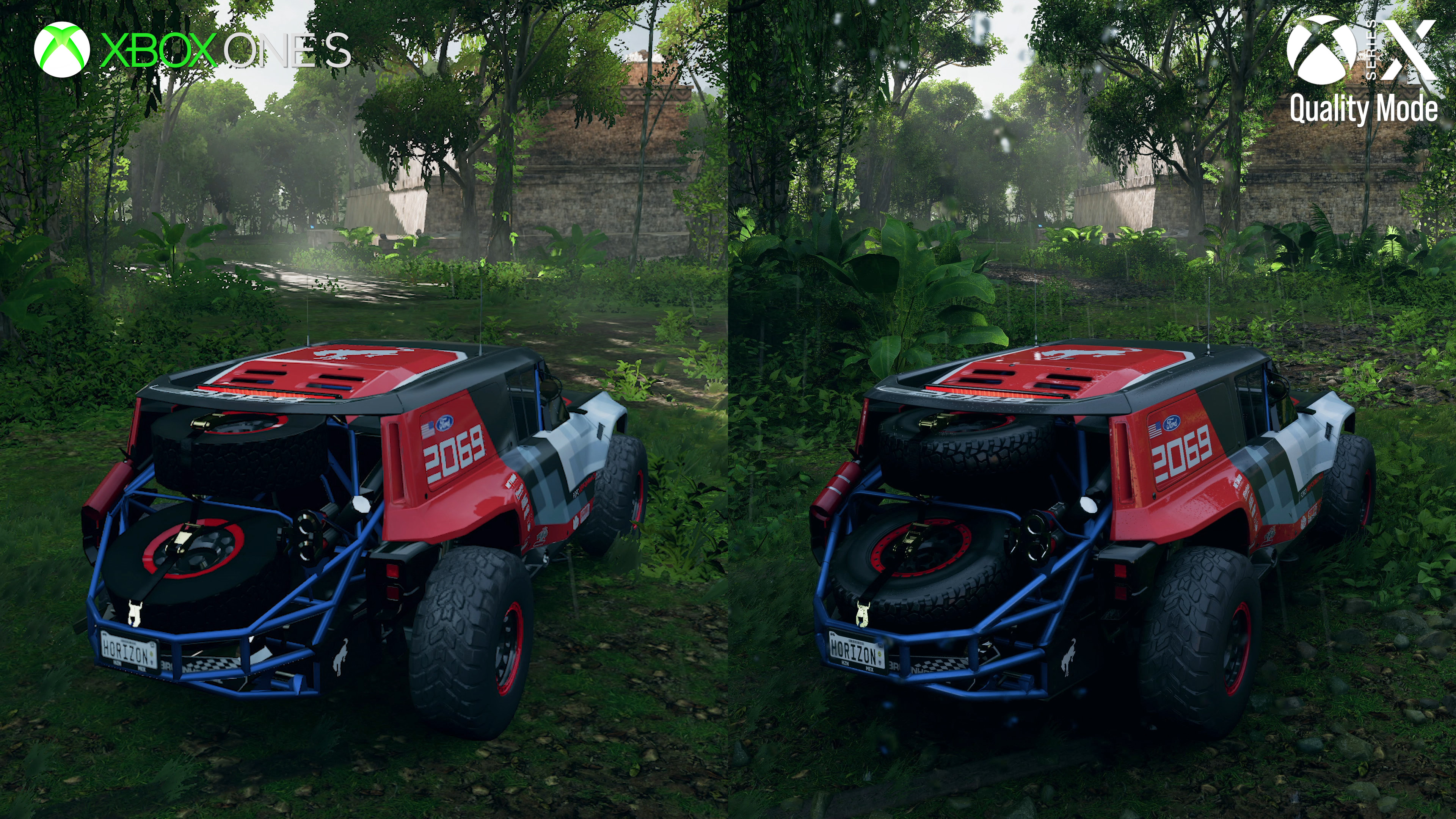 Aber um die Grundlagen aus dem Weg zu räumen, gibt es im Wesentlichen sechs Konsolenversionen von Forza Horizon 5. Xbox One rendert bei 1080p mit 4x MSAA (mit der dynamischen Auflösung, die gelegentlich auf 810p gesenkt wird) und läuft mit einem überzeugenden, aber deutlich vermehrten visuellen Feature -Set. Xbox ein x? Native 4K mit einem 1600p -DRS -Minimum – und wieder mit 4x MSAA -, aber eine allgemeine Zunahme der visuellen Merkmale. Beide Spiele laufen bei 30 fps ohne nennenswerte Leistungsrückfälle. Auf den neuen Maschinen gibt es einen Leistungsmodus und einen Qualitätsmodus. Die Serien S ausgeführt den Qualitätsmodus zwischen 1440p und 1080p (ein Upgrade des von uns gesehenen Vorschaltungscode) mit einer Leistungsalternative, die 1080p mit DRS -Fallback auf 810p beträgt. Serie x? Native 4K im Qualitätsmodus mit einer 4K -Leistungsoption behoben, die wieder auf 1600p skalieren kann. Auch hier ist 4x MSAA in allen Konsolen der Xbox -Serie Standard und es lohnt sich, dass DRS nur gelegentlich eintrifft.