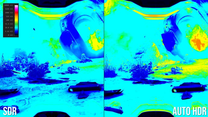Weitere Leckerei. Wir haben die Xbox One X Enhanced -Version von Halo 5 mit einer sehr überzeugenden HDR -Implementierung sehen, obwohl 343 Branchen das Spiel nie mit HDR -Support versendet haben. Microsoft ATG Principal Software Engineer Claude Marais hat uns gezeigt, wie ein maschinelles Lernalgorithmus mit der hochmodernen HDR-Implementierung von Gears 5 eine vollständige HDR. Es ist auch nicht gefälschter HDR, Marais hat einen Heatmap-Modus ausgewählt.
