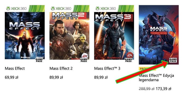 Mass Effect Die legendäre Ausgabe tauchte kurz mit einem Xbox Game Pass Abzeichen in Polen auf