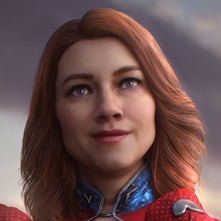 Homelander -Operatoransicht von der Brust nach oben, mit halbfarbenem Rot
