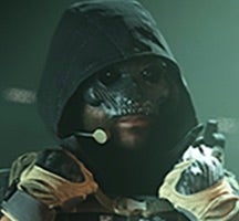 Abolisher -Operator vom Nacken mit einer schwarzen Kapuze, Maske- und Nachtsichtbrille, die rot leuchten