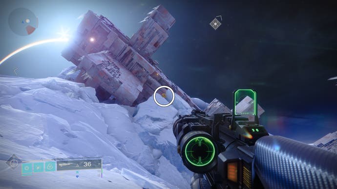 • Fahren Sie vom Charon nach Cadmius Ridge’s Überqueren schneller Reisepunkt. Wenn Sie ankommen. Folgen Sie der Kontur der Struktur nach rechts, und die Drohne wird in der Eisformation direkt vorne sichtbar sein.
