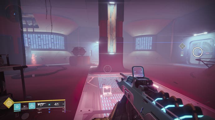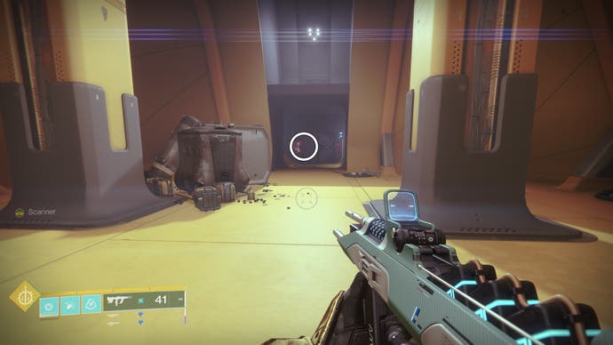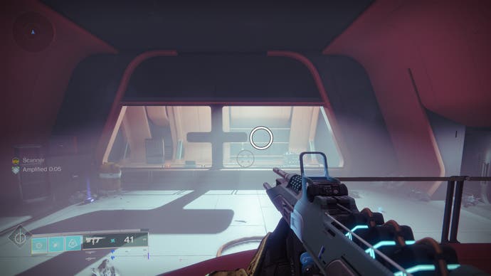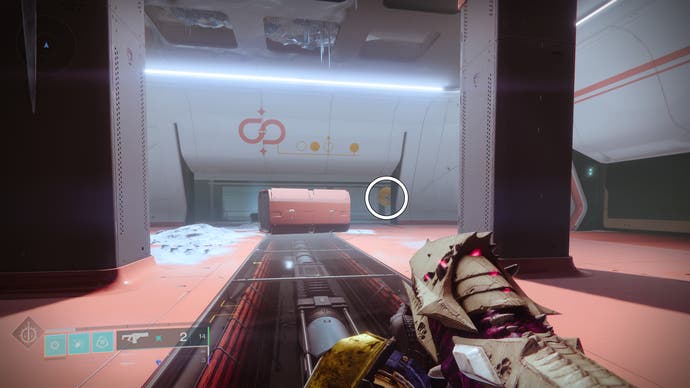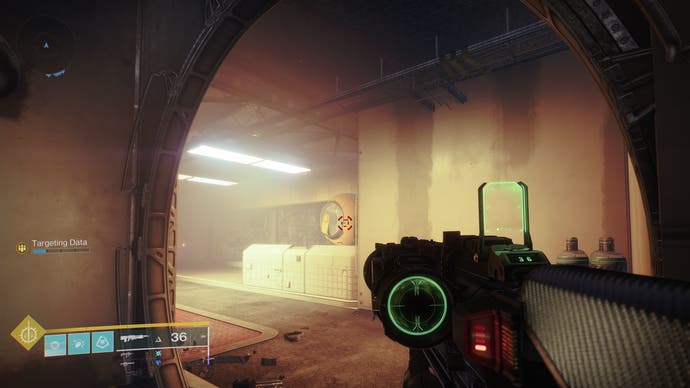 • Nach dem Abschnitt mit dem Suppressor -Augment erreichen Sie den Raum direkt vor dem Chef (beachten Sie den Rallye -Flagge -Spot im Voraus). Es gibt eine Tür mit einem Terminal in diesem Raum. Schießen Sie die Symbole, um Zugang zur Drohne zu erhalten.