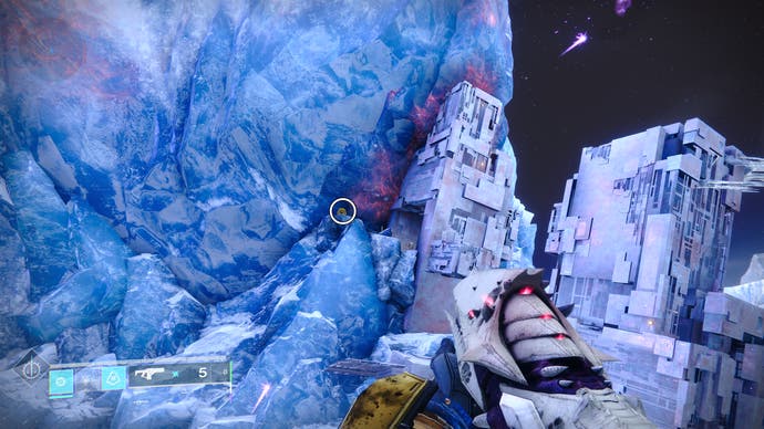 • Reisen Sie zum Asterion Abyss. Schauen Sie sich die massive Eiswand nach Westen an und folgen. Die Drohne befindet sich oben links, wo sie sich treffen.