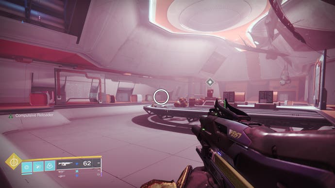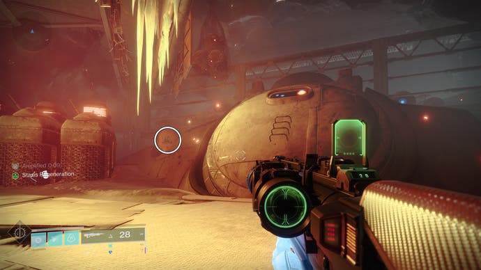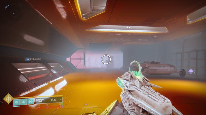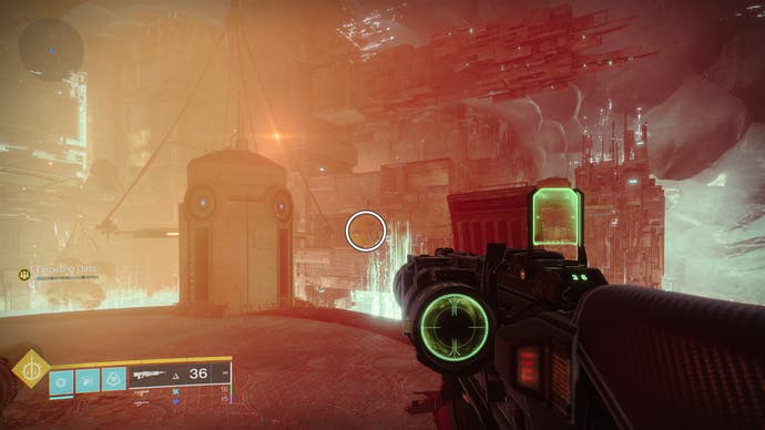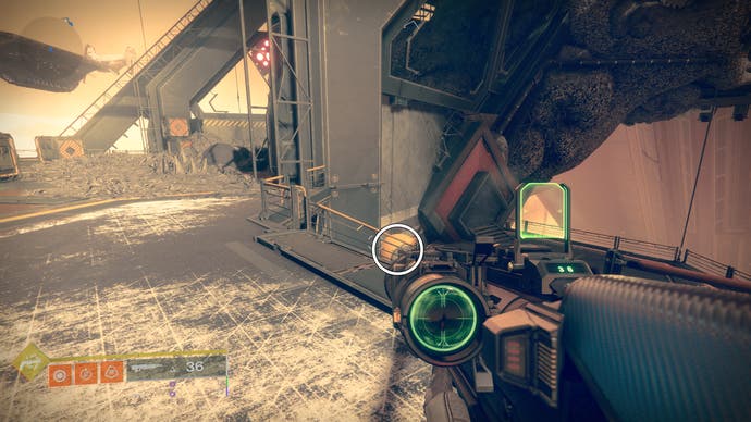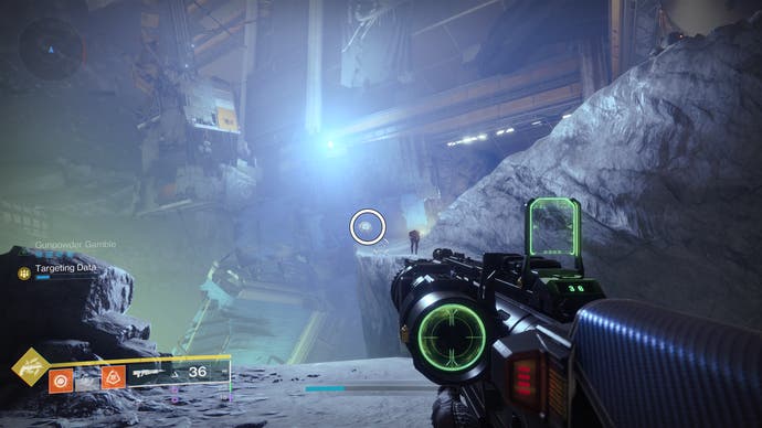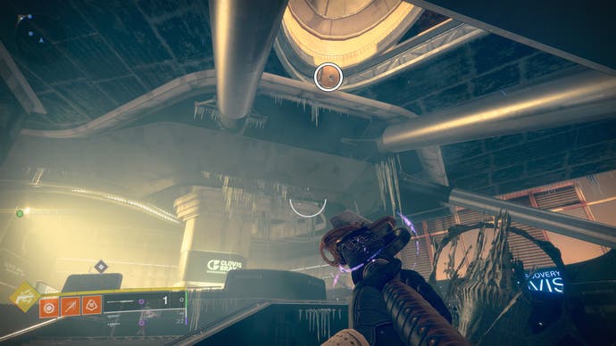 • Betreten Sie das K1 Crew Quarters Lost Sektor. Die Drohne befindet sich etwa zur Hälfte des verlorenen Sektors auf der rechten Seite des Abgrunds in der Nähe eines Gebäudes.