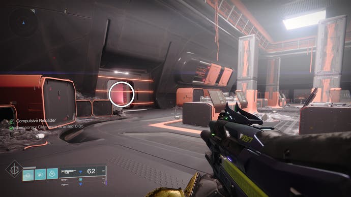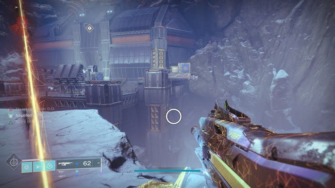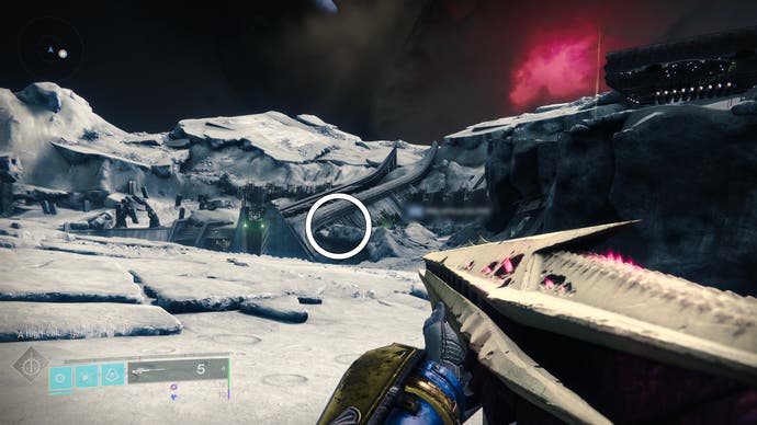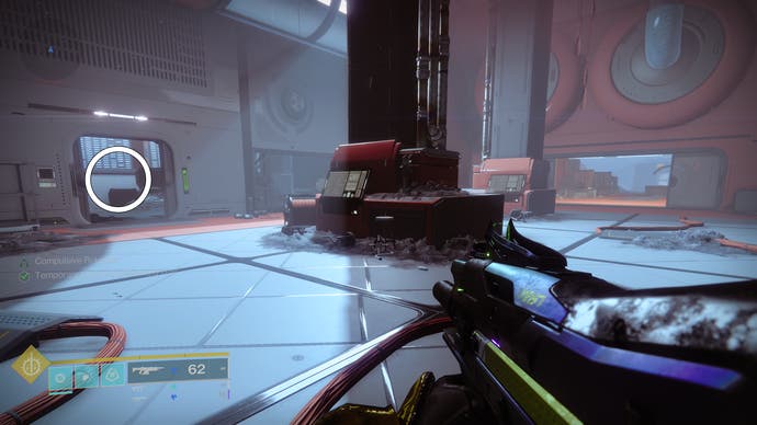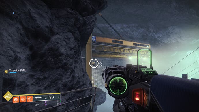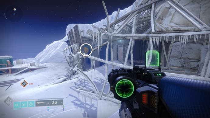 • Gehen Sie zum Gebäude, in dem der Eingang zum Bunker E14 Lost Sektor untergebracht ist. Springe an die Spitze des Gebäudes’S Innenraum und schauen Sie in die südöstliche Ecke.