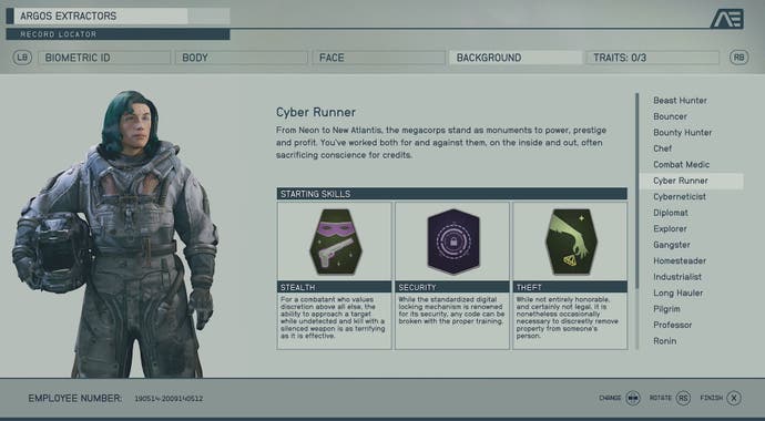 - Cyber Runner – Dieser Hintergrund ist ideal für jeden, der einen Schurkenstil-Aufbau im Stil haben möchte STARFIELD mit Sicherheit, Stealth und Diebstahl kommen. Die Fähigkeit zur Stealth zu haben bedeutet, Sie’Beginnen Sie das Spiel mit dem Stealth -Messgerät, mit dem Sie wissen können, wie erkennbar Sie für Feinde sind. Diebstahl entsperren unterdessen Taschendiebstahl Und Sie wissen nie, wenn Sie jemanden durchsuchen’S Taschen werden nützlich sein.