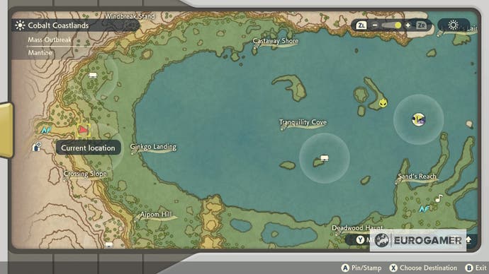 Ein eleganter Schwanz wird freigeschaltet, sobald Sie das Gebiet der Cobalt Coastlands freischalten.Es ist relativ einfach, insbesondere für Fans des Franchise, die sofort herausfinden, welche lockigen Schwanze Pokémon, Asabei – ein Charakter, der auf dem kleinen Hügel nordwestlich des Südtors steht – ist danach.