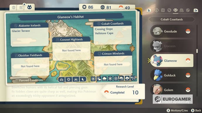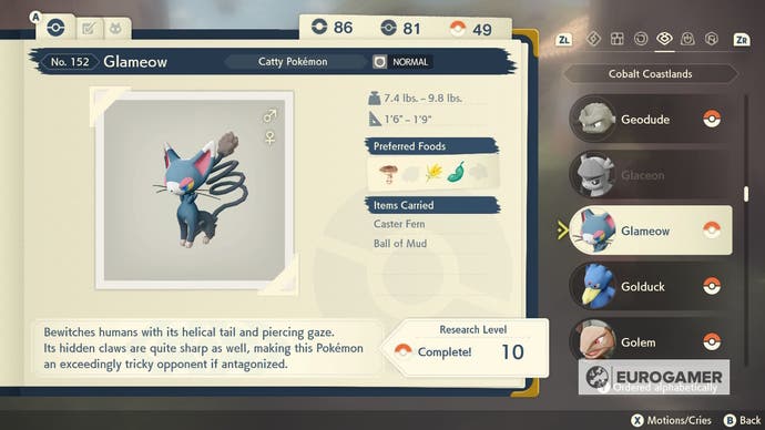 Glameow -Standorte in Pokémon Legends Arceus erklärte