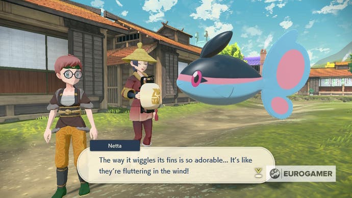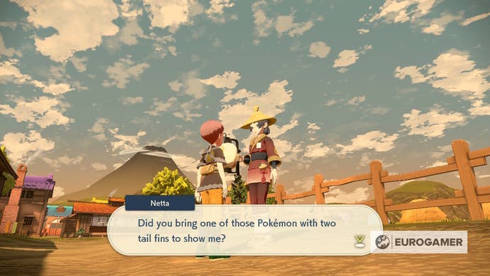 Sobald es erscheint, sprechen Sie einfach mit Netta, um zu hören, dass sie eine sehen möchte Pokémon, das sie einmal zuvor gesehen hat, eine mit zwei Schwanzflossen.
