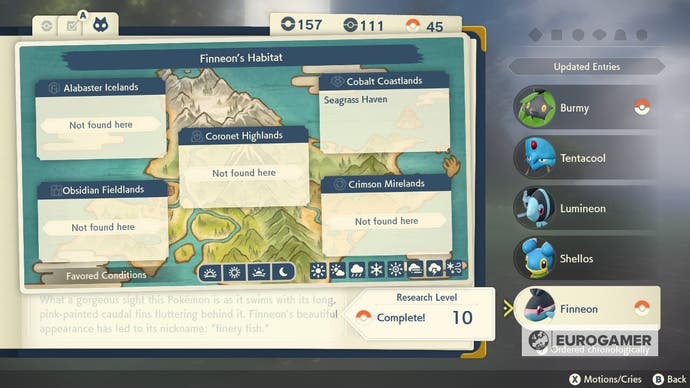 Du’re auch beauftragt, den Hisui Pokédex zu füllen Durch die Erlangung neuer Entwicklungen wie Kleavor durch Entwicklung von Skyther, Wyrdeer durch Entwicklung von Stantler, Sneasler durch Entwicklung des Hisui -Sneasel und überquil durch die Entwicklung von Hisui Qwilfish.