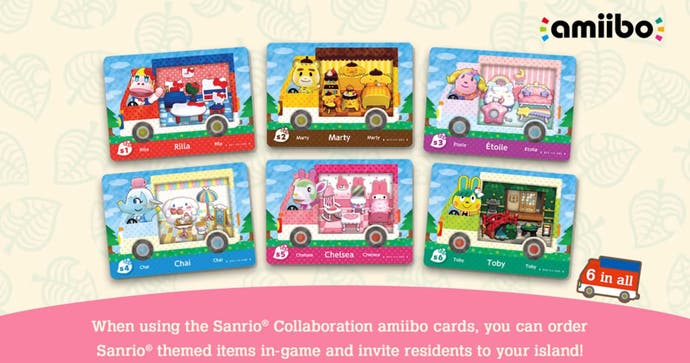 Mit diesen sechs Karten können Sie die einladen Dorfbewohner Sanrio die von beliebten Charakteren inspiriert wurden, die von Sanrio wie Hello Kitty auf Ihre Insel erstellt wurden.