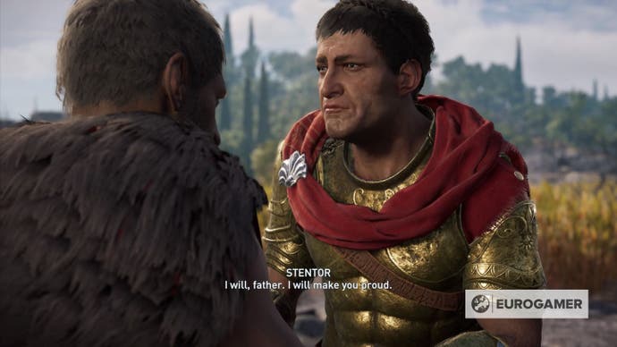 Unabhängig davon, ob Sie als Alexios oder als Kassandra spielen, werden Sie dem Mann, der Sie zu Ihrem „Tod“ als Kind geworfen hat, irgendwann gegenüberstehen. Um den Wolf von Sparta persönlich zu treffen, müssen Sie einige Aufgaben für seinen neuen Adoptivsohn Stentor erledigen.