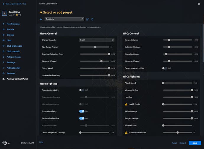 Der „Animus Control Panel „Ermöglicht Sie mit 75 Spieloptionen – von der Änderung des Hauptcharakters des Spiels bis hin zu feineren Attributen wie unbegrenzter Gesundheit, erhöhter Geschwindigkeit und verbesserter Sinne.