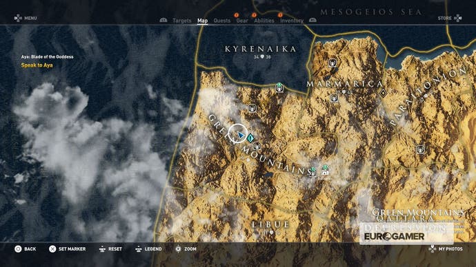 Rätselhinweis: „südlich von Cyrene, in den grünen Bergen gibt es einen See, dessen Wasser aus einem magischen Strom stammt. Ich werde an der Quelle dieser Magie sein, wo Wasser aus dem Nichts fließt.“