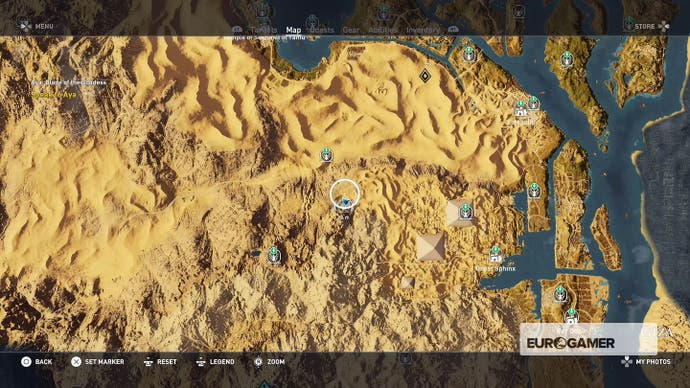 Der Eingang zum endgültigen Grab befindet sich im Sphinx, ER, linkes Gesäß, ist jedoch erst verfügbar, nachdem er alle anderen Mechanismen aktiviert und alle 12 Steinkreise für die Versprechens -Seite des Bayek -Seites gefunden und aufgebaut hat.