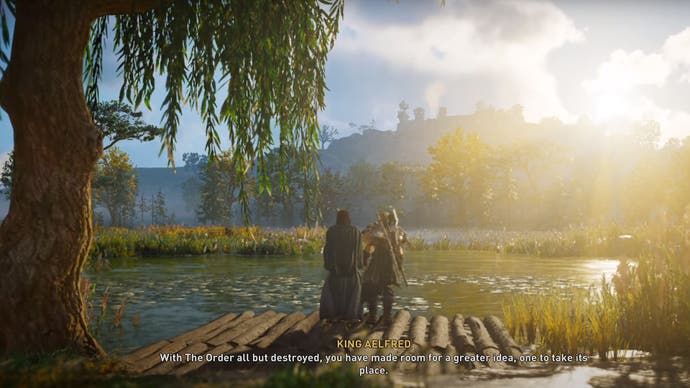 Eiveror und Aelfred sind letztendlich in Frieden teil, obwohl Alarmglocken hier lange läuten sollten Assassins Creed -Fans (oder jemand, der den Spitznamen „Armer Mitsäure Christi“ gegoogelt hat). In einer weiteren Wendung erwähnt Aelfred, dass er jetzt an der Ordensordnung beginnen wird, „eine universelle, göttliche Ordnung, die von Gott für die Verbesserung des Menschen inspiriert ist“. „Mit einem armen Kollegen am Kopf“, bemerkt Eiveror. Dies wird natürlich die Templer, insgesamt die Bösewichte sein Assassins Creed -Spiele setzt danach chronologisch.