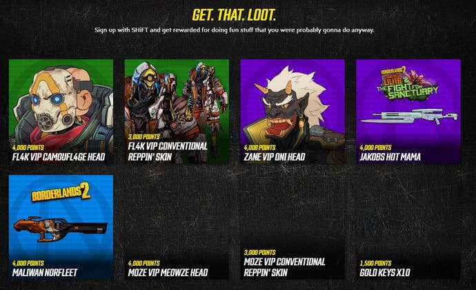 Mit der Ankunft von Borderlands 3 ist ein engagierter VIP -Site Website als Teil des Vault Insider -Programms. Dies verwendet das gleiche Anmelde- und Konto wie die SHIFT -Website oben, für diejenigen, die einen für frühere Spiele gemacht haben.