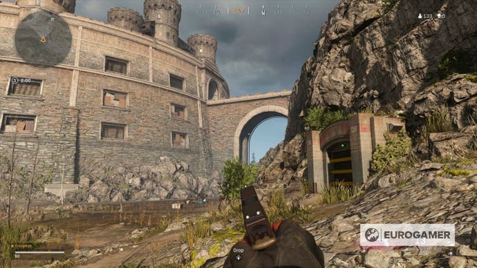 Zum Beispiel ist der Bunker außerhalb des Gefängnisses vielleicht einer der am einfachsten zu finden (im Südosten der Karte). Die Bunkertüren befinden sich östlich des Ortes, das gegen ein Klippengesicht festgelegt ist: