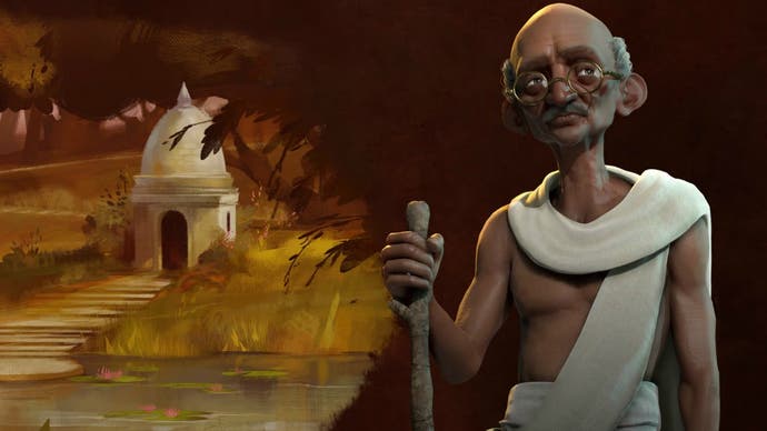 - Beim Spielen als Gandhi: Die vorteilhafte Verbreitung der Religion in seinem gesamten Reich, sowohl die seiner eigenen als auch andere Zivilisation s ‚macht Gandhi zu einem mächtigen Religionsspieler. Die Vermittlung von Distrikten der heiligen Stätte mit Stepwells bietet einen stetig sammelnden Bonus sowohl für das Religion als auch für das Stadtwachstum. Die Aufrechterhaltung des Friedens ist eine wichtige Überlegung für Gandhi und den Glaubensbonus, den er für andere erhält Die Zivilisation ist auch in Frieden, kann ihn zu einem nützlichen Mediator machen. Wenn er angegriffen wird, ist seine Varu -Einheit nützlich, um Angriffseinheiten anzugreifen. Während ein Religionssieg am wahrscheinlichsten ist, ist auch ein Wissenschafts- oder Kultursieg in seinem Griff. Seien Sie nicht auf der dunklen Seite von dem großen roten Knopf, der an einem Nuke angeschlossen ist.