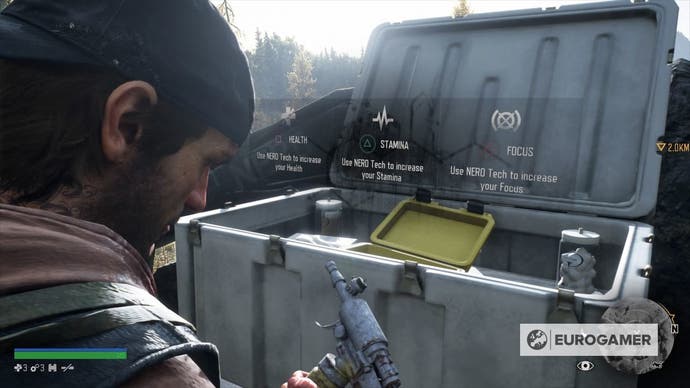 Durchgehend gefunden Tage vergangen ist der Nero -Injektor. Dies gewährt Deacon st. John die Wahl, entweder seine maximale Gesundheit, seine Ausdauer oder seine Fokus zu verbessern, wobei letztere an eine Fähigkeit aus dem Fernkampfkompetenzbaum gebunden sind, und die Zeit verlangsamt, während Sie zielen.