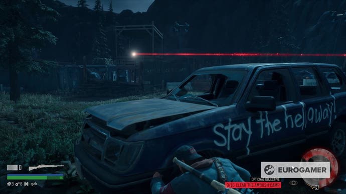 Es gibt mehrere Nero -Einheiten, Sprecher in allen und ein Banditenlager, das Sie aufpassen müssen. Seien Sie jedoch vorsichtig, da die Schüsse wahrscheinlich eine Horde alarmieren werden Das ist im Tunnel.