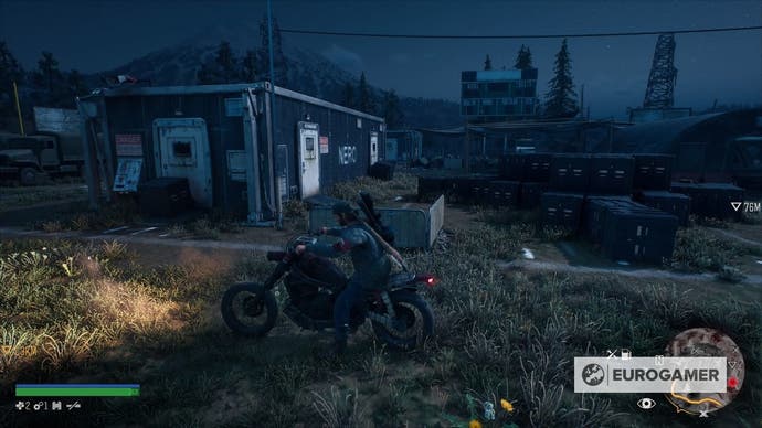 Der Gastank befindet sich in einem der Zelte und liegt nur auf dem Boden. Kommen Sie zum Generator, aber achten Sie auf, da es hier ungefähr sechs Lautsprecher gibt. Vier von ihnen sind an üblichen Orten, während die anderen in leichten Pfosten gefunden werden können. Hier liegt es an Ihnen: Sie können sie entweder ignorieren, alles innen plündern und so weit wie möglich aussteigen oder sie vorher schießen lassen. Stellen Sie in jedem Fall sicher, dass Ihr Fahrrad in der Nähe geparkt ist.