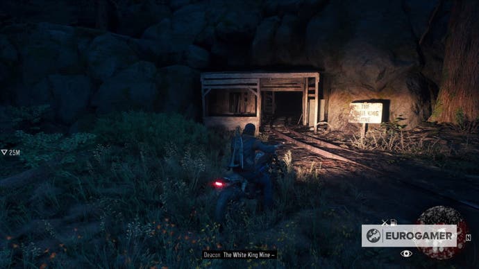 Dieser befindet sich auf der gegenüberliegenden Seite, rechts in der oberen linken Ecke des Bereichs. Nehmen Sie sich dem Ort auf der Karte nahe und Sie werden Diakon ein Zeichen lesen: The White King Mine.