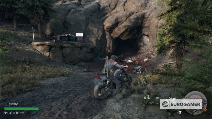 Von dort gehen Sie weiterhin entweder mit Ihrem Fahrrad oder zu Fuß auf und Sie werden eine Höhle sehen. Ignorieren Sie es vollständig und gehen Sie weiter, bis ein Campingplatz findet. Hier sehen Sie zusammen mit dem Forscher -Feldnotiz einen neuen Nero -Injektor – 1833.