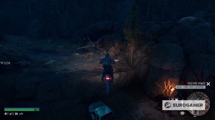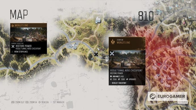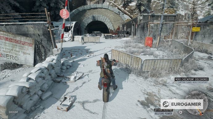 Es gibt zwei Dinge, um die Sie sich kümmern müssen, um Nero -Checkpoints zu öffnen: einen Gastank für einen Generator zu finden und ihn dann aufzusetzen. Es wird immer einen in der Nähe geben, aber manchmal müssen Sie zum Beispiel auf ein Dach klettern, um auf die andere Seite eines Zauns zu gelangen.