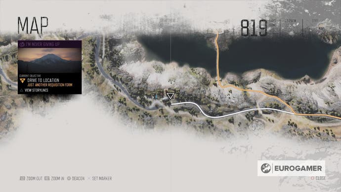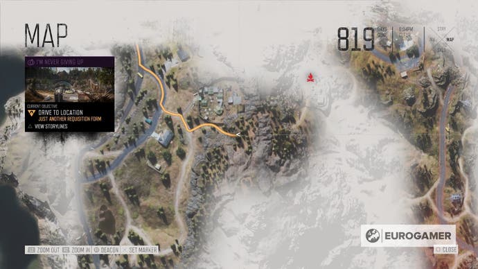 Es gibt mehrere Forschungsorte in der Kaskadenregion und beachten. Der erste ist auf der Südseite der Karte in der Nähe des Eingangs zum Lost Lake zu finden. Sie werden es höher sehen als dort, wo Deakon nur durch Springen erreichen kann, also müssen Sie auf die andere Seite gehen und Ihren Weg der Straße verfolgen.