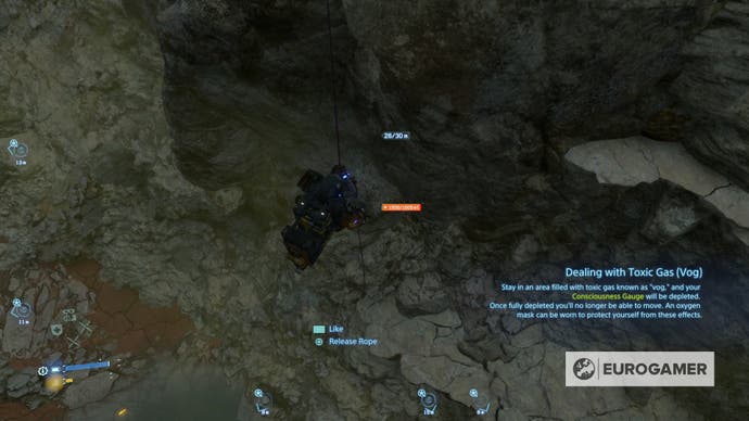 - Tipps: Diese Mission ist viel schneller und einfacher als sie aussieht. Es dauert ungefähr fünf Minuten, um abzuschließen. Gehen Sie nach Westen nur eine kleine Entfernung und Sie werden auf eine riesige Fissur in der Erde stoßen. Steigen Sie ein wenig näher ein und verwenden Sie Ihren Scanner, um die Ladung unten anzuzeigen. Rüsten Sie zunächst die Sauerstoffmaske aus, die Sie gerade entsperrt haben, damit Sie die Dämpfe überleben können. Verwenden Sie dann ein Seil – entweder Ihr eigenes oder eine andere Person, die sich niedergelegt hat, um den Boden sicher zu erreichen und die Ladung zu sammeln. Nehmen Sie diese nun zurück, um die Mission abzuschließen.